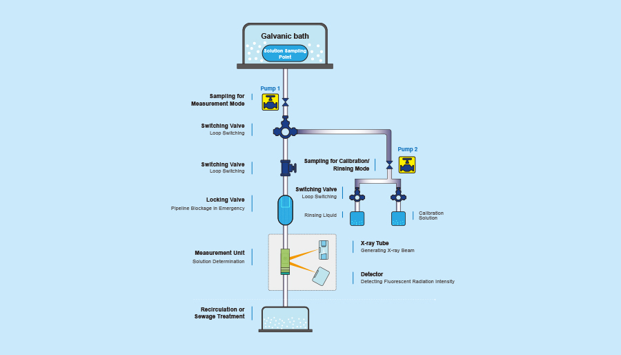 Система In-flowX кардинально меняет подход к анализу состава гальванических ванн. Она позволяет проводить прямое измерение в потоке жидкости, одновременно определяя содержание химических элементов в широком диапазоне концентраций — от частей на миллион (ppm) до массовых процентов (вес.%). Встроенные функции автоматического пробоотбора, калибровки, анализа в реальном времени, интеллектуальной сигнализации и самоочистки исключают необходимость трудоемкого ручного отбора проб и лабораторных исследований, значительно повышая оперативность и точность контроля.